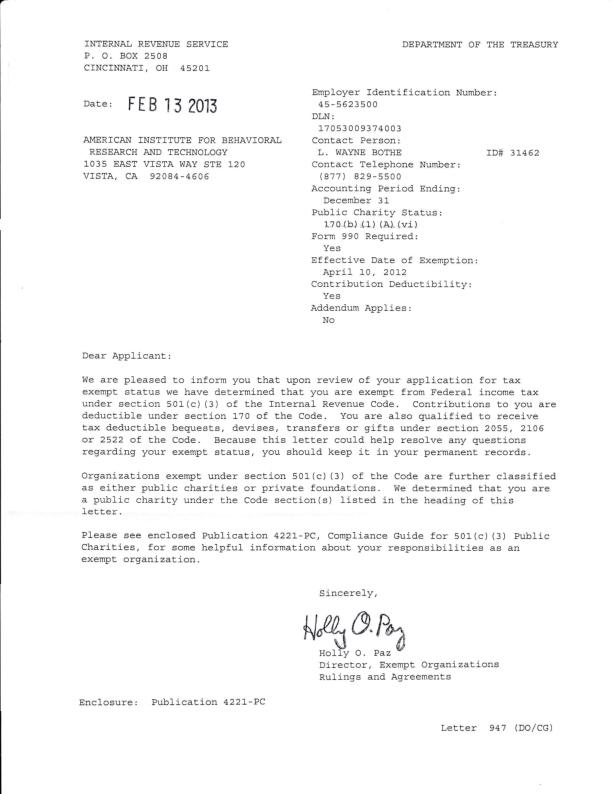 You may contribute using GiveButter, PayPal, or any major credit card. AIBRT is a nonprofit, nonpartisan, 501(c)(3) public charity, so your gift is tax deductible. Please give now, and give generously! Our IRS tax-exempt certificate can be accessed here.